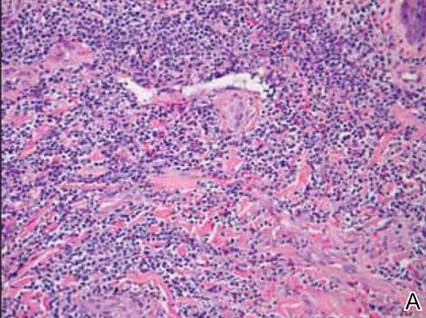 Leukemia cutis (LC) is characterized by the infiltration of malignant neoplastic leukocytes or their precursors into the skin, most often in conjunction with systemic leukemia.1 Acute myelogenous leukemia (AML) is the second most common cause of LC and the most common form of leukemia among adults.1 Patients with leukemia often are in a relative or absolute immunocompromised state, which may be secondary to neutropenia, chemotherapy regimens, or immunosuppressive regimens following stem cell transplant (SCT). Thus, when evaluating cutaneous lesions consistent with LC in immunocompromised patients, there must be a high index of suspicion for concomitant opportunistic infections.