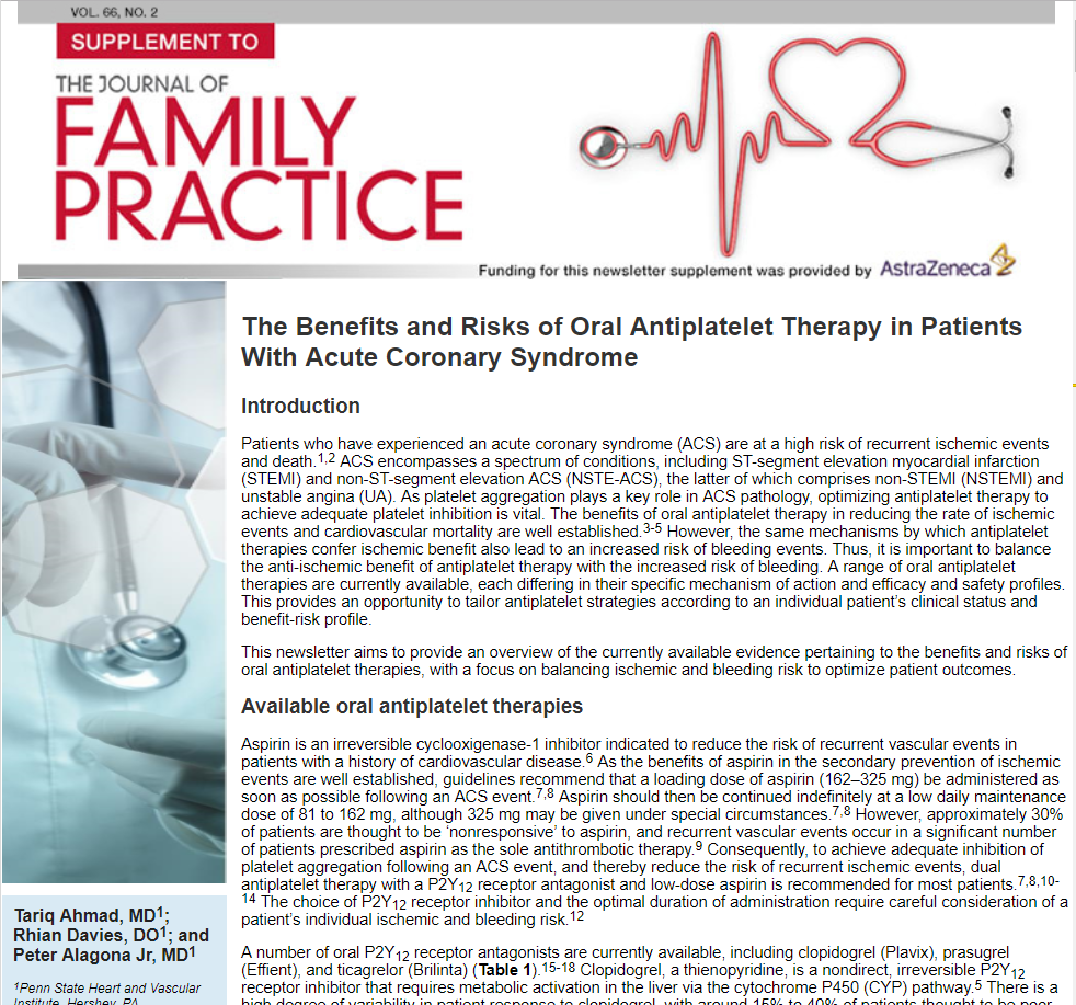 Optimal Duration of Antiplatelet Therapy Following Acute Coronary Syndrome is the fourth eNewsletter in this series.