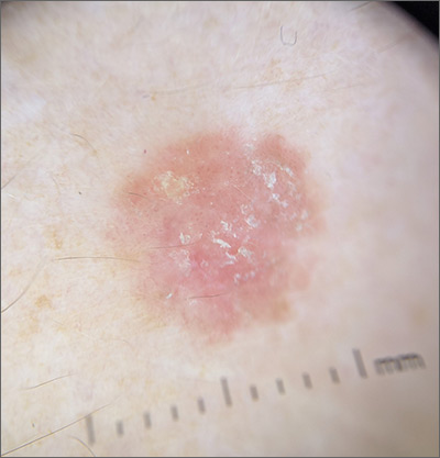After the physician outlined the treatment options, this patient opted for an elliptical excision. At the patient’s next follow-up appointment, she was found to have multiple AKs on her face; they were treated with cryotherapy. Patients with a diagnosis of precancerous or cancerous skin lesions are at high risk for additional AKs and skin cancer, so they should be counseled regarding the use of sun protective measures and the importance of annual screening for new lesions.