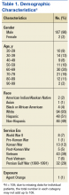 A multivariate analysis using logistic regression was conducted to determine whether conditions or exposures often associated with eosinophilia might explain any observed elevations in eosinophil levels. For the logistic regression model, the response variable was eosinophil levels > 3%. Explanatory variables included parasitic infection diagnosis, including C immitis, dyslipidemia diagnosis, malignancy diagnosis, allergy and/or atopy diagnosis, and HIV diagnosis. In addition, the analysis controlled for demographic variables, such as age, sex, race, period of service, and Agent Orange exposure and were included as explanatory variables in the model. Categorical variables were coded as 0 for negative results and 1 for positive results and were identified as missing if no data were recorded for that variable. Statistics were performed using Stata 13 (College Station, TX).