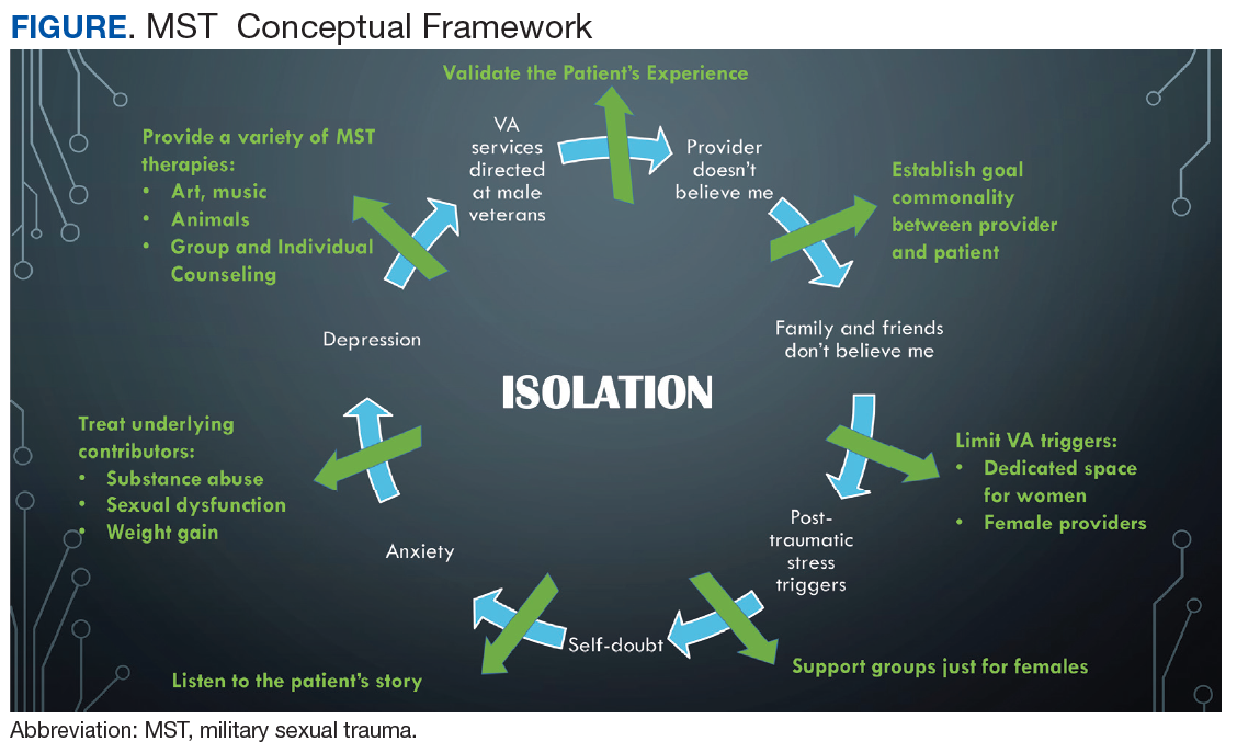 At all of the focus groups, female veterans reported that physician validation of the assault was essential to healing. When providers communicated validation, the women experienced the most improvement in symptoms.