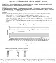 Reports display a graph showing overall performance of the division and individual provider rates (an example is shown in Figure 1 ). Currently, most reports are sent unblinded; previously it was left to the discretion of the division chief. Patients are attributed to the provider they have seen most often during the reporting period. If there is a tie between 2 providers the patient is attributed to the most recent provider. Provider-level reports are also developed to show the physician’s performance over time as compared to the division’s overall performance. The reports list the provider’s patients and their performance status on the metric. We found that identifying patients not meeting the metric are essential to gaining clinician buy-in [11]. Physicians can be skeptical of baseline data if the rationale and details around how measurement was performed are not clearly communicated. Concrete examples with their own patient panel provide the proof they need and the relevant caveats and limitations of the data, in order to work toward improvement. We have seen clinic improvement on many metrics, with some clinics improving from 40% to over 88% in 2 to 3 years [12,13] ( Table 1 ).