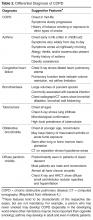 The differential diagnosis of COPD is listed in Table 2 . While some of the other diagnoses listed are rare in the United States (eg, diffuse panbronchiolitis, obliterative bronchiolitis), others, such as asthma and congestive heart failure, are quite common. In addition, in underdeveloped regions of the world, bronchiectasis and tuberculosis continue to be very important and prevalent diseases.