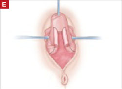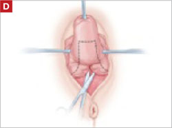 Suture the apical sides of the anterior and posterior rectangles together using a continuous running technique (FIGURE 2F). Then approximate the lateral sides bilaterally using continuous sutures.